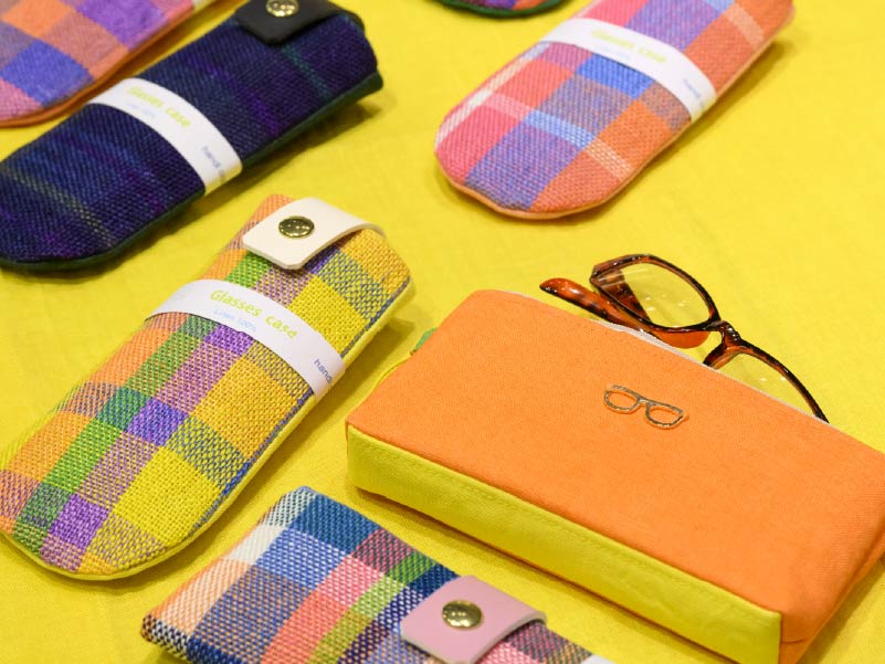 読書の秋、カフェの秋 ふっくらおしゃれなチェック柄の手織りリネンメガネケースで秋のおしゃれを楽しもう。秋の贈り物に、手織りの風合いが時別な時間を彩ります。※すべて1点もの、無くなり次第終了