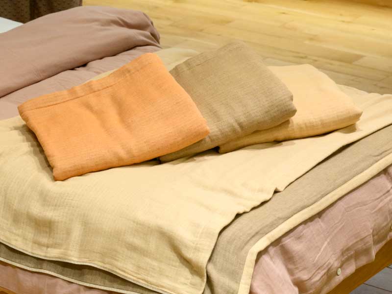 PGGAUZEの定番商品。糸にほとんど撚りをかけない無撚糸を使用。空気をふくんだやわらかな風合い。これからの季節の毛布代わりに。