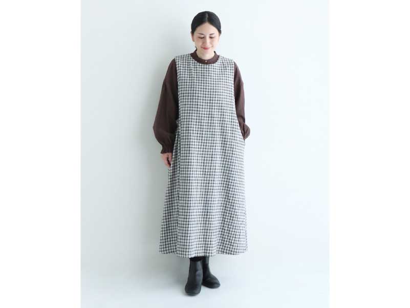 秋らしいチェック柄で、インナー次第で様々なスタイリングを楽しめるAラインシルエットのノースリーブワンピース。Vネックとクルーネックの2wayで着用可能。