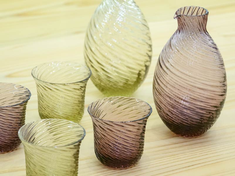 見ていると吸い込まれそうな「渦潮」のように激しい渦の模様を施した酒器です。斜めに入った模様が滑り止めの役割を果たし、持ちやすく、注ぎやすいのが特徴です。