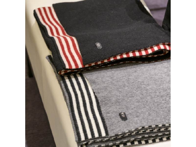 N ゜21らしい洗練とウィットが織りなす、リバーシブルの大判ウールマフラー。男女問わずユニセックスで使用可能。