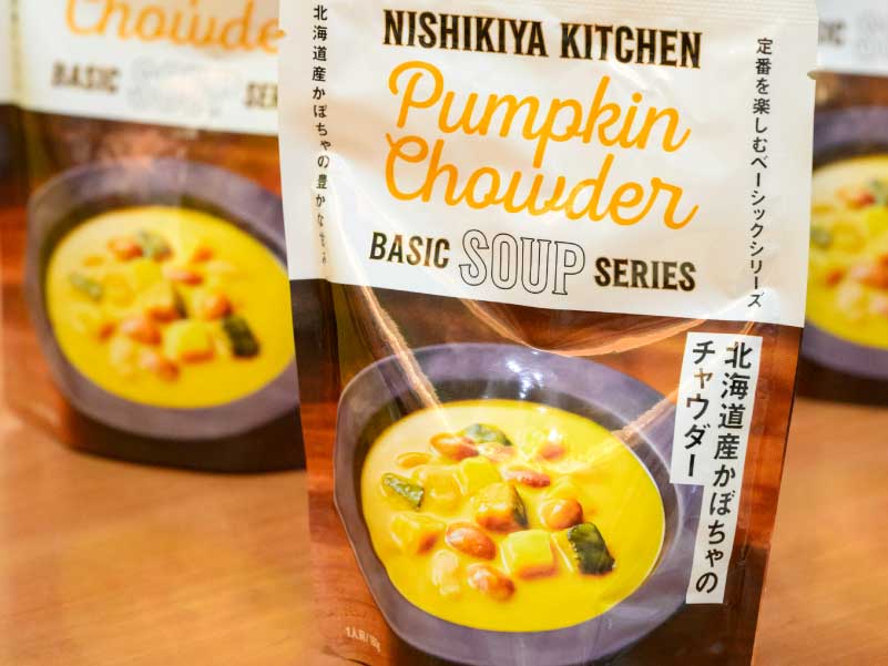 ②北海道産かぼちゃの豊かな甘みを味わえる一品です。満足感もあり毎日の食事にもおすすめの、美味しさがぎゅっとつまったスープです。