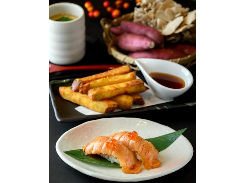 ①香ばい漬けサーモンに、イクラをON!秋の贅沢な限定商品です。