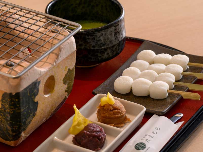 ①秋の味覚の芋や栗を使用したあんこと人気のみたらしを組み合わせました。お好きな味をお団子と一緒にお楽しみください。
